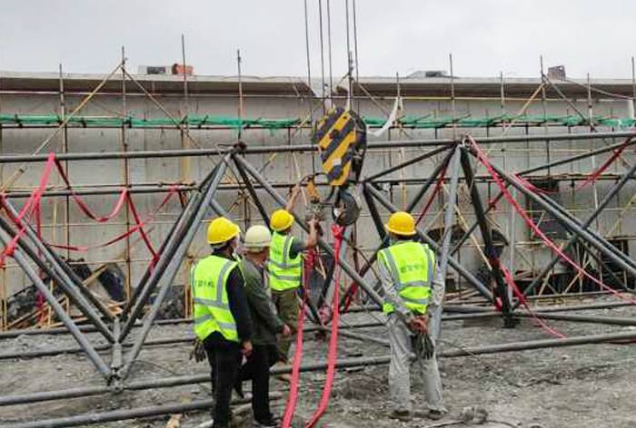 4、華亭煤礦網(wǎng)架工程在開工時要保證水、電、道路的三通,應確保構(gòu)件運輸?shù)轿坏牡缆窌惩ā?/span>